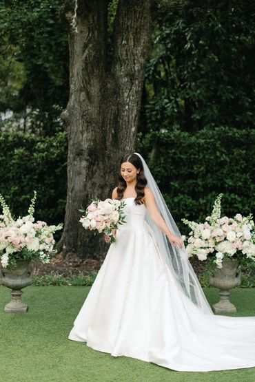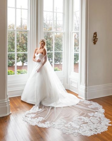 The wedding veil should complete the bridal look, like the last puzzle piece that completes the puzzle. It needs to bring the whole look together without taking away any beauty from the bride nor the dress.