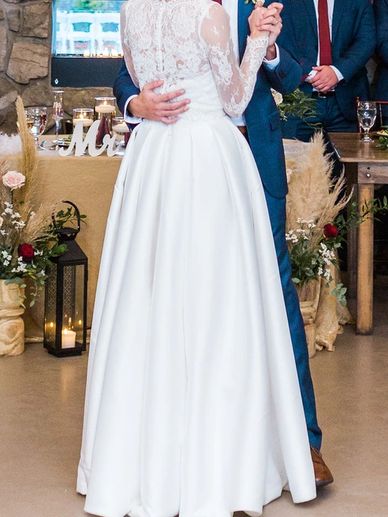 This style bustles looks good and easy to bustle satin ,crepe,taffeta,chiffon,mikado dresses.